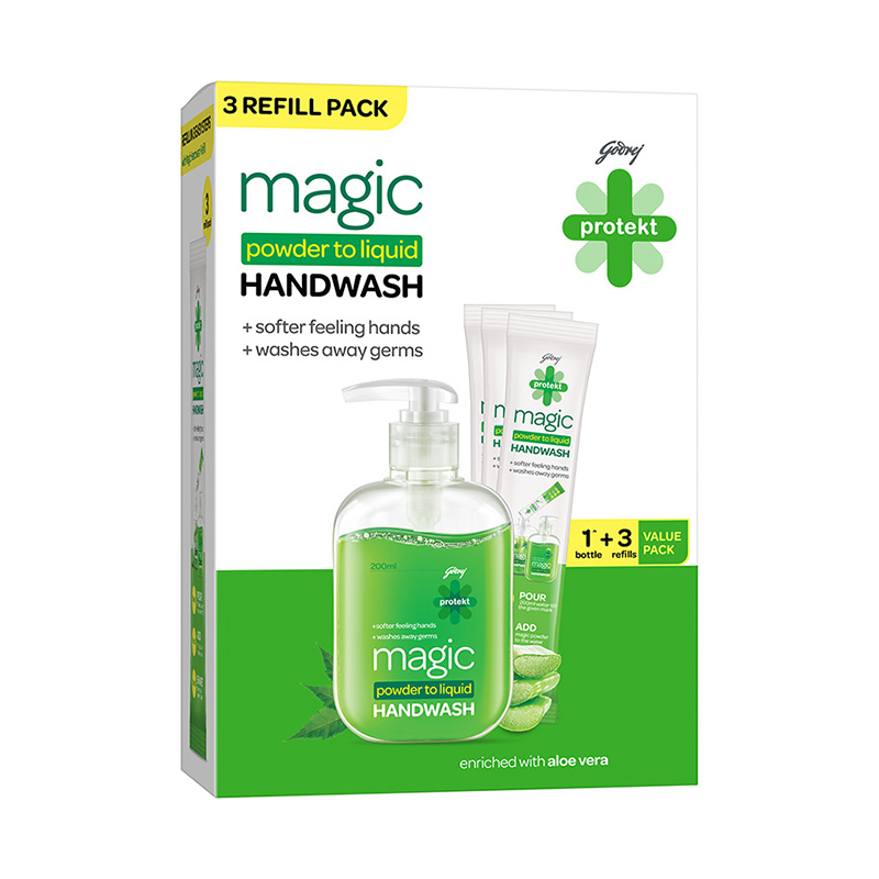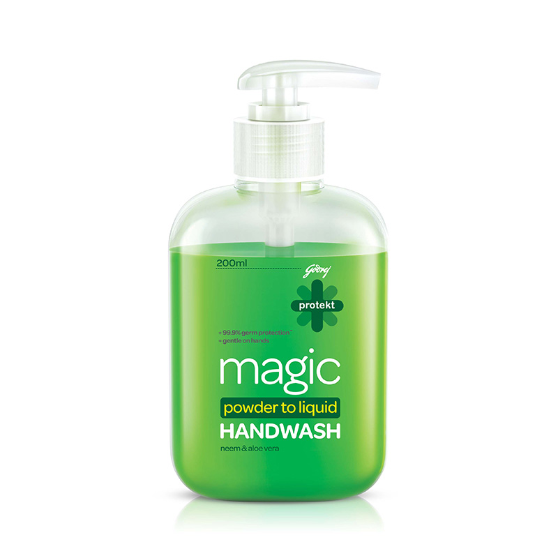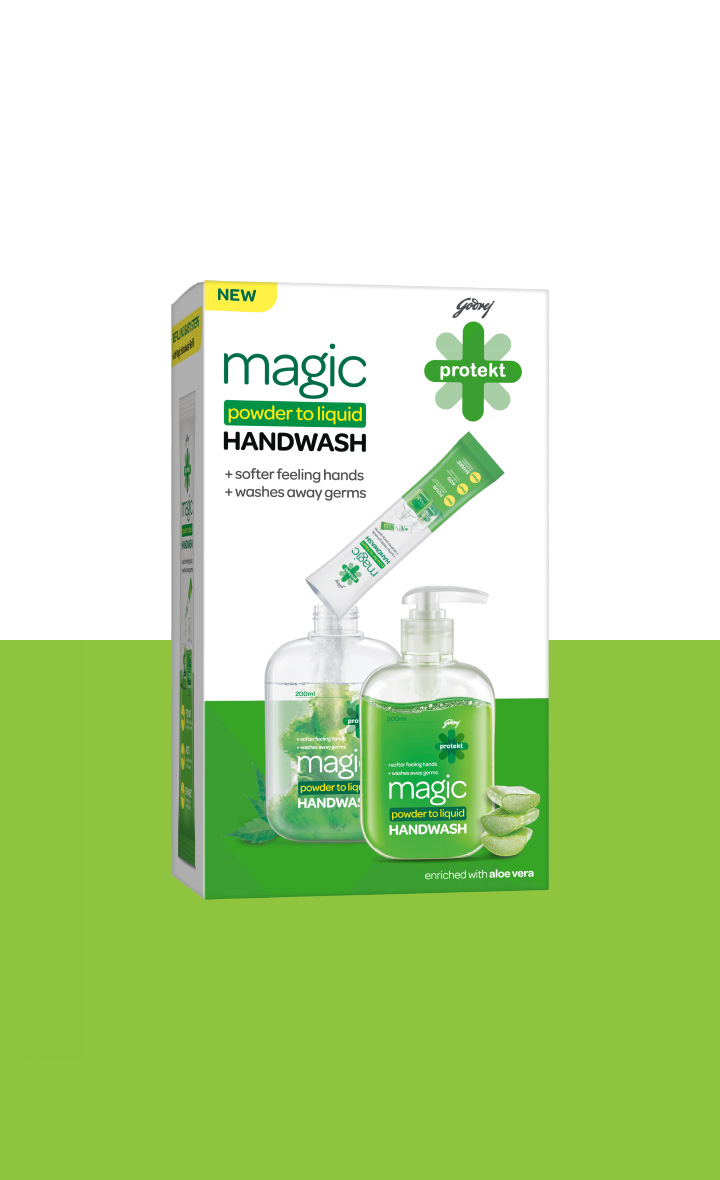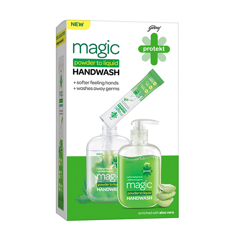 Godrej protekt magic handwash is India’s first-ever powder-to-liquid handwash. All you have to do is add the magic handwash powder to 200 ml water in a bottle and shake the bottle well. For best results, use the handwash after 2 hours of making it.